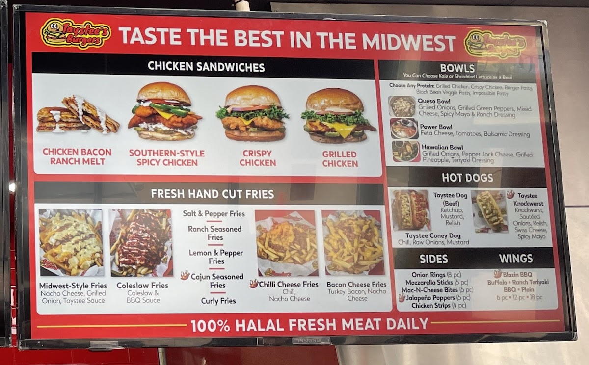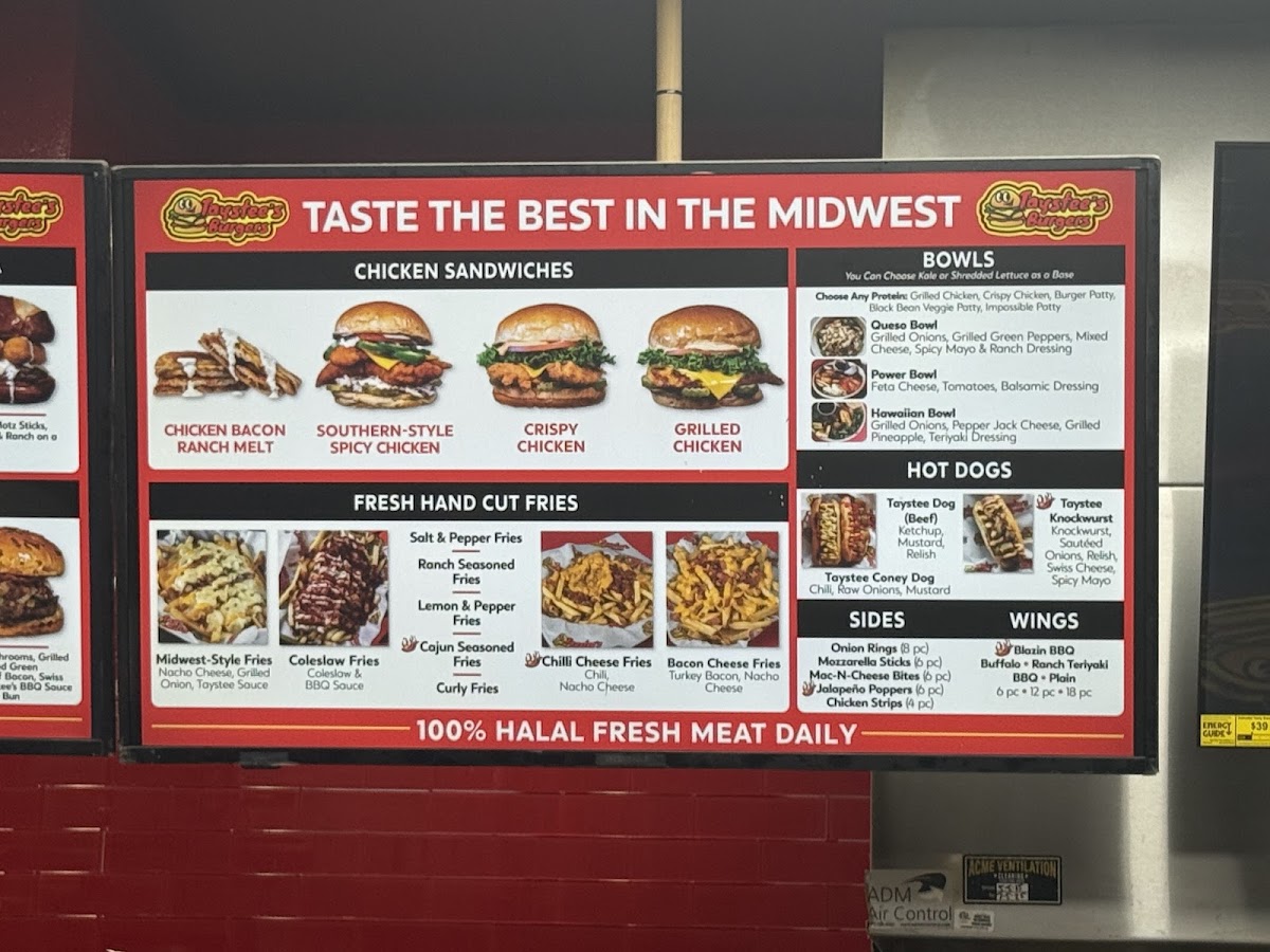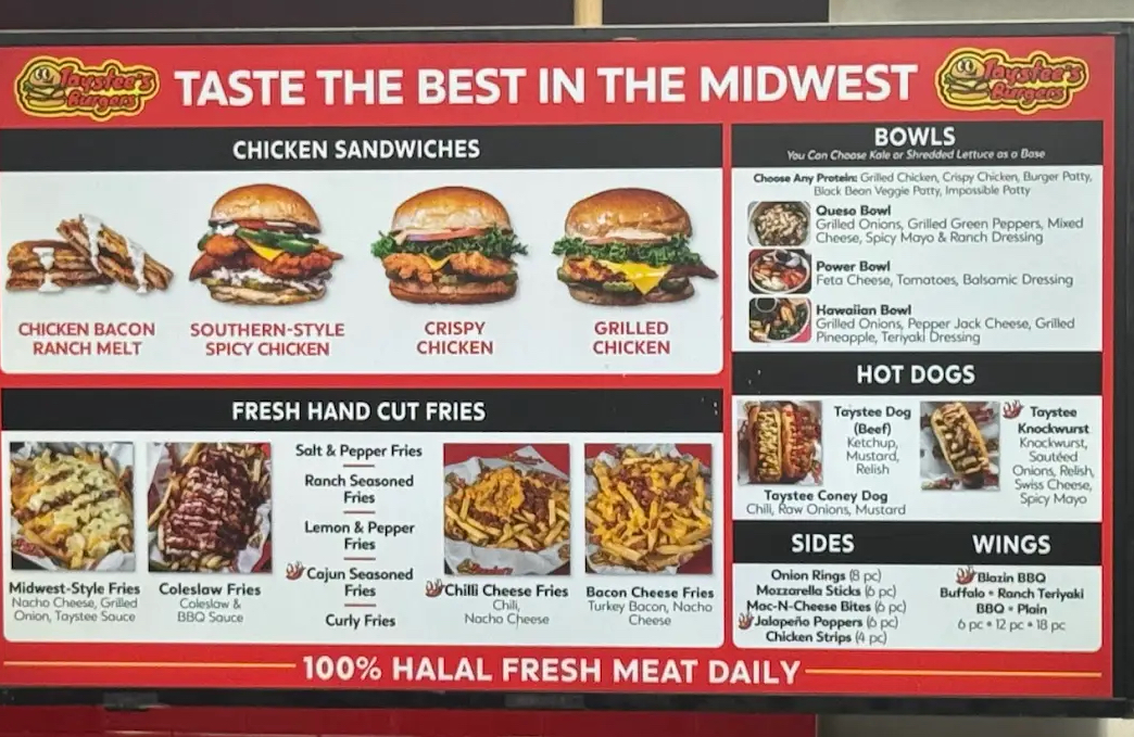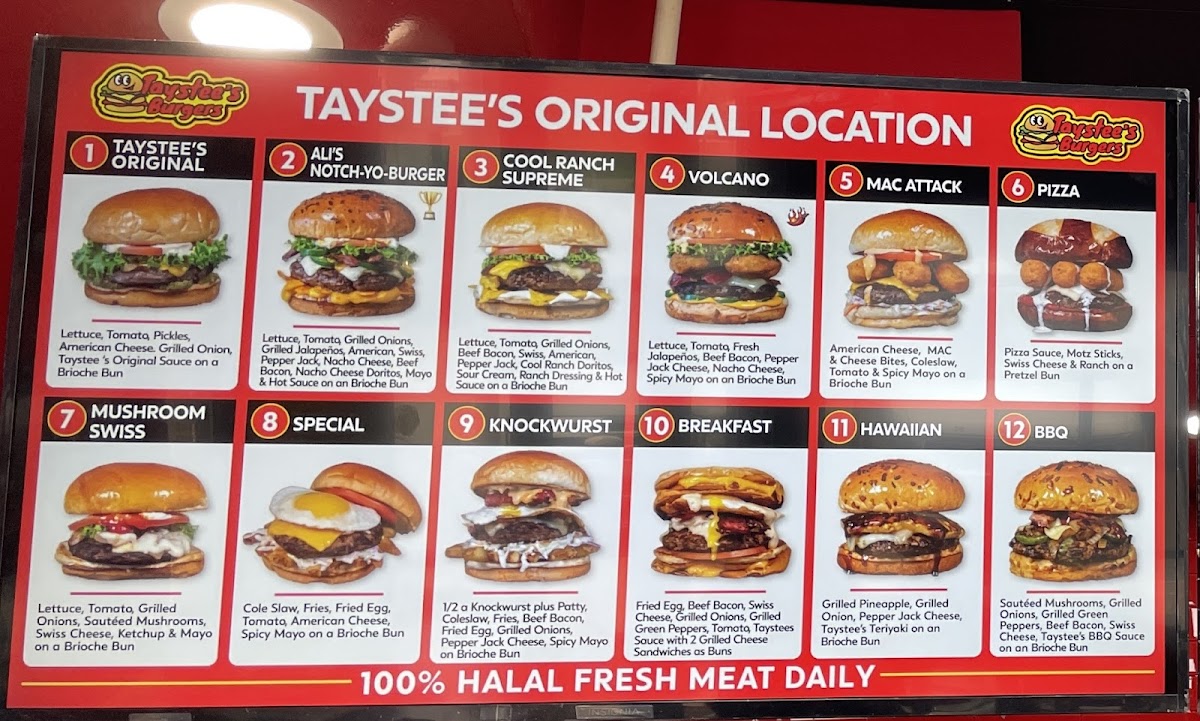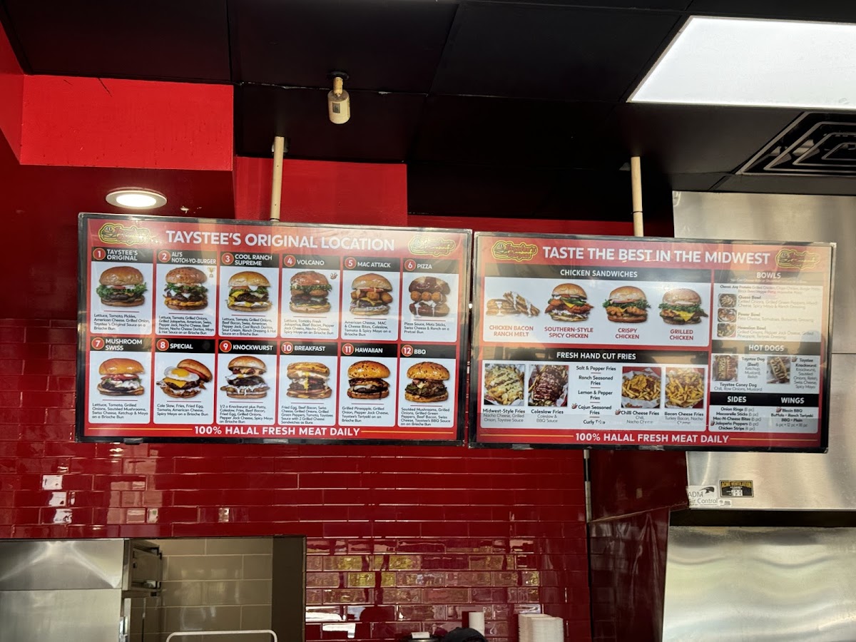 “ Stopped by Taystee’s Burgers kind of late — glad they were open late because I was hungry. I asked the brother behind the counter what he recommended, and he pointed me to the Ali’s Notch‑Yo‑Burger. And let me tell you — it did not disappoint. This burger is loaded. We’re talking multiple cheeses, beef bacon, jalapeños, nacho cheese, mayo, hot sauce, and even Doritos packed inside. It’s messy in the best way possible — every bite is packed with flavor, crunch, heat, and that perfect cheesy, saucy goodness. It’s bold, it’s creative, and somehow it all works together perfectly. Honestly, it might be one of the best burgers I’ve had in a long time. The food came out quick, the staff was friendly, and again — it’s all halal, which is a must. You really wouldn’t expect a burger this good to come from a gas station, but they’re killing it. Definitely coming back next time I’m in Dearborn. This spot is a gem. ”